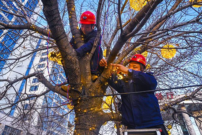连日来,龙泉能源公司组织人员在食堂、生产楼、培训楼门口布设节日彩灯和灯笼。数九寒冬并没有影响安装人员的工作热情,忙碌的身影成为冬日里一道温暖的风景。一串串彩灯迎风摇曳点缀着园区的景色。有的负责挂彩灯,有的负责排线接线,工作配合十分默契。食堂门口景观树缠绕太阳、月亮形状氛围彩灯及串灯400米,生产楼前缠绕彩灯300米。串灯、彩灯和灯笼进行交错装饰,突出多样视觉效果,渲染出红红火火、喜气洋洋的节日氛围,让整个矿区年味更浓。