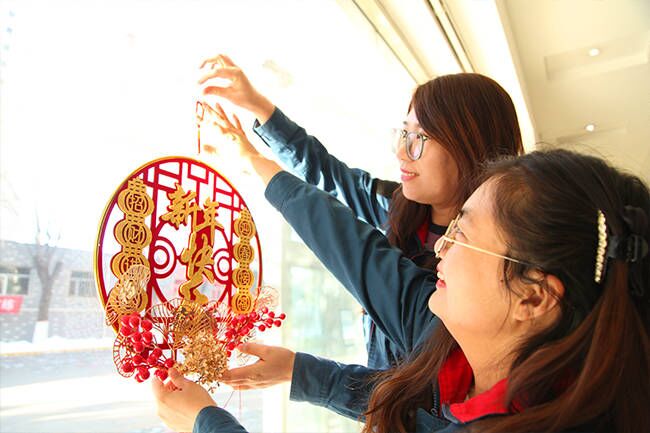 青年职工统一着装,拿着喜气洋洋的新春道具,在公司大门口、办公楼、机房主控室、维护部楼前等场景依次拍摄新年祝福视频,送上满载新春的祝愿。工作人员冒着严寒在厂区内装扮彩色灯带,挂上红灯笼、福袋等,不仅为夜晚增添了一抹亮色,也让公司处处充满了浓浓的年味。