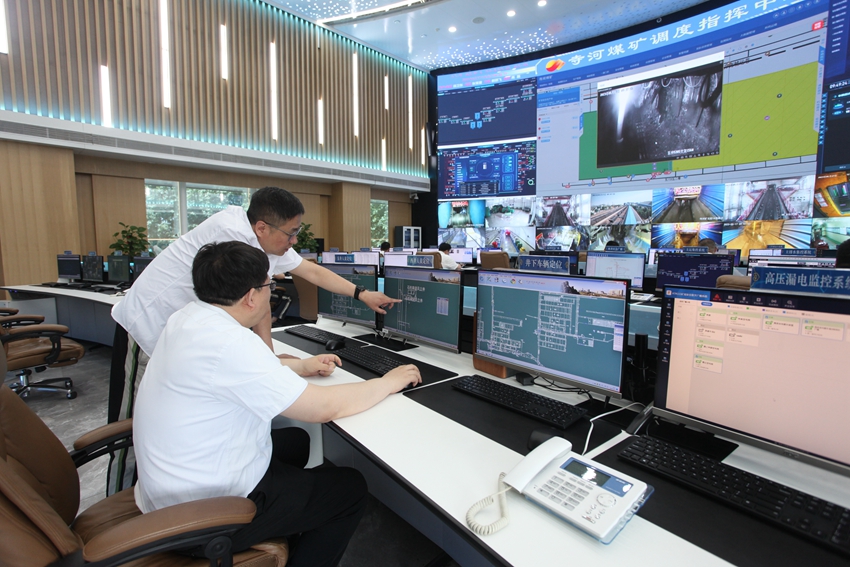 在寺河矿调度指挥中心,智能信息监控中心智能化负责人董璐介绍说,“一调度+四中心”的智能化管理模式,是寺河矿的“最强大脑”。通过万兆工业环网、模块化数据机房的信息基础建设,将调度指挥中心、集中控制中心、辅助运输集控中心等相耦合,集安全生产、监测监控、集中控制等功能于一身,实现智能化控制指挥,做到“一矿一图、以图管矿、一屏尽览”。