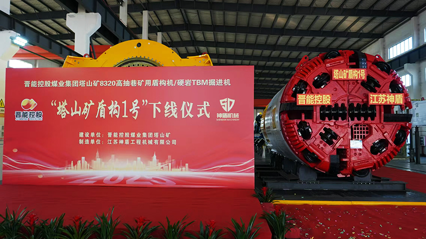 据了解,“塔山矿盾构1号”是塔山矿结合矿井地质条件和生产需求,经过多次现场调研与考察,联合江苏神盾工程机械有限公司精心研制的成果,1月9日验收下线后将在该矿8320高抽巷投入使用。该盾构机采用护盾式设计,开挖直径3.53米,整机设计总长84米,重量达164吨,集掘进、出渣、支护、除尘、导向等多功能于一体,成功实现了掘、支、运关键工序平行同步作业,预计月单进水平可达300-600米,较传统岩巷掘进工艺效率提升5倍左右。此外,该盾构机还具备施工安全系数高,巷道成型质量好,抗变形能力强,维护、维修工作量少等优势,真正实现“0”空顶距作业。