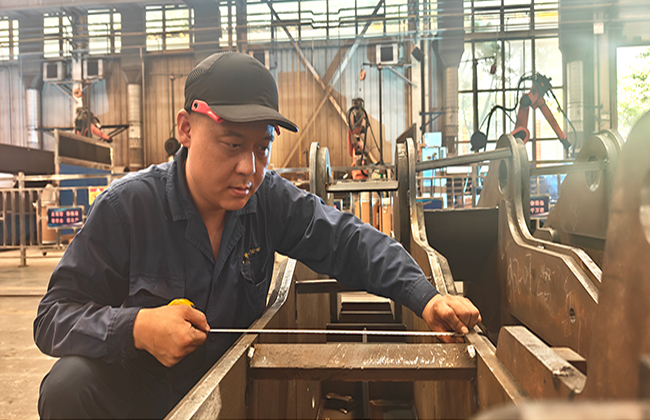此外,他还在机器人焊接班组开展焊接试验,研究不同材质板材的焊接强度和受力程度。近期,他组织开展的焊接试验取得了新突破。试验中他采用了Q460、Q550两种材质的钢板,选择了60级焊丝、70级焊丝、80级焊丝三种焊材。经过反复试验与调整,显示70级焊丝的效果最好,不仅强度达到标准,而且焊接后的工件外观更为美观,焊缝平整、均匀,提高了产品的外观质量。