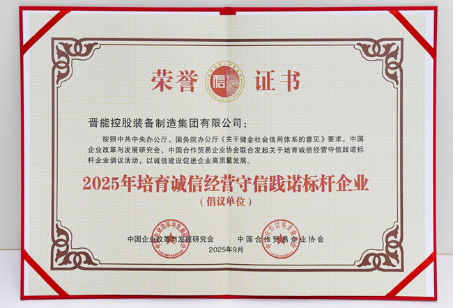 近日,在中国企业改革与发展研究会、中国合作贸易企业协会联合发起的“2025 年培育诚信经营守信践诺标杆企业”倡议活动中,装备制造集团凭借在诚信建设、合规经营、社会责任履行等领域的实践与成效,成功获评“2025年培育诚信经营守信践诺标杆企业”。