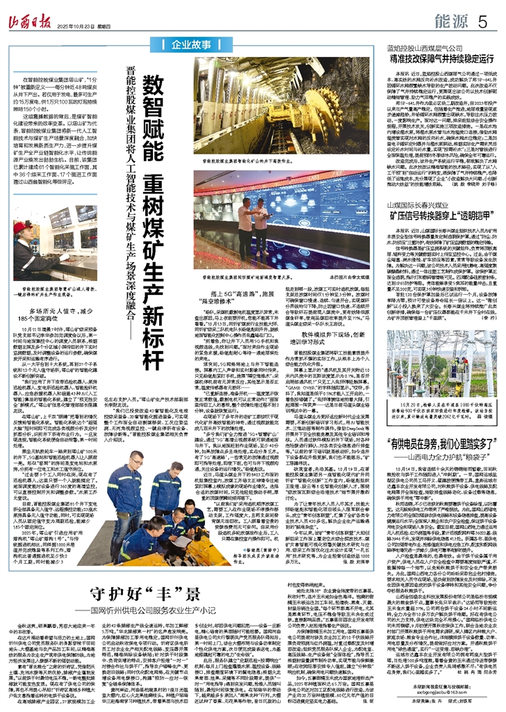 控股煤业集团将新一代人工智能技术与煤矿生产场景深度融合,加快培育和发展新质生产力,进一步提升煤矿生产全产业链智能化水平,让传统能源产业焕发出勃勃生机。目前,该集团已累计建成61个智能化采掘工作面,其中36个综采工作面、17个掘进工作面通过山西省智能化等级评定。