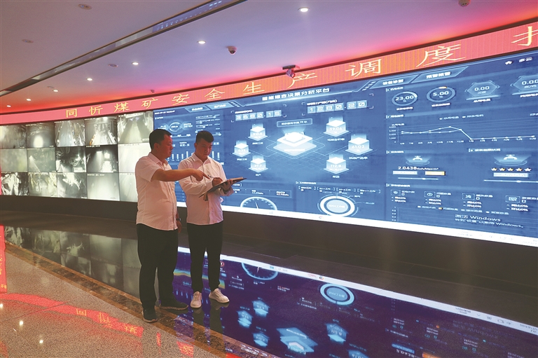 控股煤业集团同忻煤矿地面调度智慧大屏。 本栏图片由李文斌摄