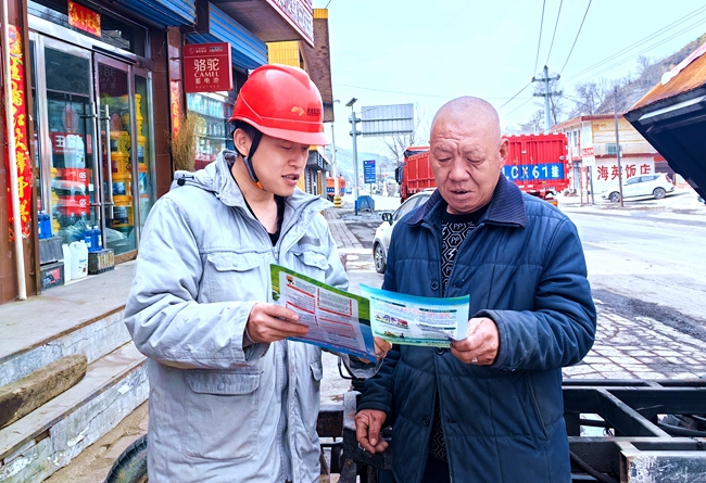 “师傅,种地时不要碰到电杆和拉线,以防发生倒杆断线事故……”地电交口分公司石口供电所党员服务队工作人员耐心地向农户讲解安全用电知识,提升农户安全用电和保护电力设施的意识。