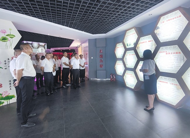 在党风廉政教育基地内,一幅幅生动的图片、一句句警示的语言、一滴滴忏悔的眼泪,静态档案与动态影像相结合的沉浸式体验,使在场的每位党员、干部及重要岗位人员心灵受到震撼。