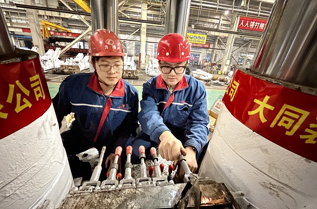 大同机电装备力泰公司党委立足生产经营实际,大力实施“党建+”项目工程,广大党员知责担责走在前、担当作为作表率,在安全生产管理、产品质量管控等各项工作中充分发挥先锋模范作用,带动身边员工真抓实干,为保质保量完成各项目标任务提供了有力保障。图为力泰公司车间党员带头把好液压支架修理质量关。