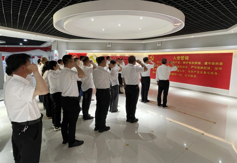 活动结束后,党员干部面对鲜红的党旗,举起右拳庄严宣誓,铿锵的声音激励着每一名党员、干部不忘初心、牢记使命,廉洁从业,恪守底线。