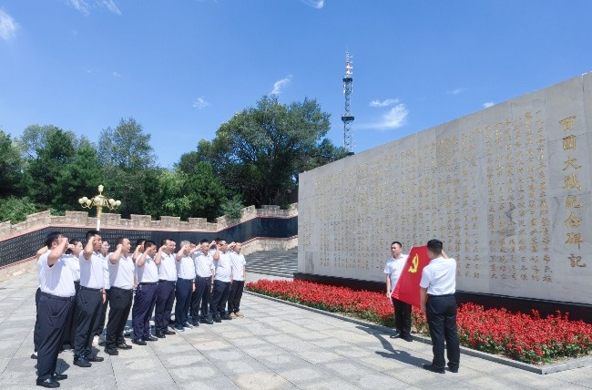 狮脑山巅,松柏苍翠,百团大战纪念碑如利剑般直指苍穹,碑身“战绩辉煌永垂史册”八个鎏金大字在阳光下格外醒目。全体党员干部在纪念碑广场前整齐列队,面向党旗庄严宣誓:“我志愿加入中国共产党,拥护党的纲领,遵守党的章程……”铿锵誓言回荡在山间,既是对长眠于此的抗战英烈的深切缅怀,更是对“为人民谋幸福、为民族谋复兴”初心的再次叩问。