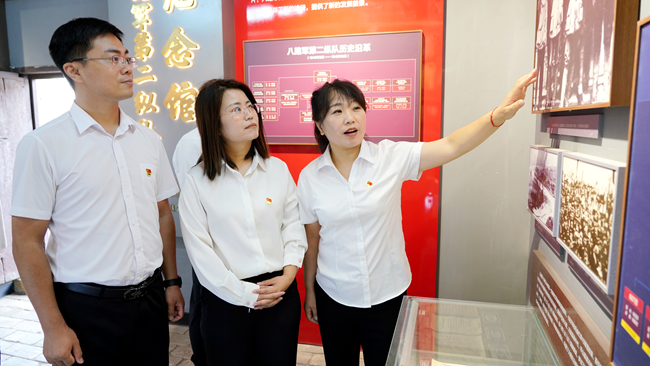 在义汉红色教育基地,“工房就是战场,机器就是刀枪”的标语依然醒目。参观学习过程中,党员们跟随讲解员的脚步,时而驻足凝视、时而低声交流,通过一组组锈迹斑斑的军用器械、一份份泛黄的电文手稿、一张张珍贵的历史照片以及一段段刻骨铭心的革命故事,共同回顾晋冀鲁豫军工十厂和八路军第二纵队为民族解放和人民幸福做出的卓越贡献,被革命先烈坚定的理想信念、崇高的革命精神和无私奉献的高尚情怀深深打动。