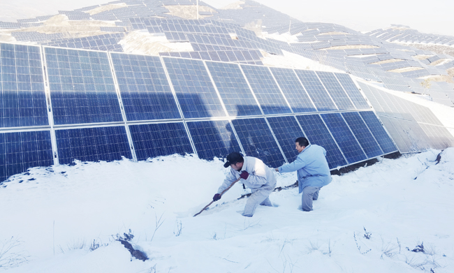 面对大雪极寒天气,该公司设备部团员青年结合以往经验迅速增加重点区域保温外护、伴热装置等检查频次,对主变、升压站等室外区域重点检查;发电部运行人员抓好现场安全措施落实,加强值班管理、生产调度管理,规范现场作业行为,对室外设备进行地毯式排查,加大空气预热器、烟道、轴冷水及伴热等系统巡检力度,对空冷岛齿轮油油箱以及暖风幕等设备增加测温频次,及时掌握设备运行状态,确保所有设备正常运行;庄磨光伏电站组织运维人员立即成立“清雪队”,踏着厚厚积雪,冒着零下摄氏20度低温,忙碌在占地近500亩光伏区进行清除积雪,减少组件遮挡确保其尽快发挥电热效应,缩短了组件清洁并网时间。因电站为山地光伏,清雪人员只能扛着工具徒步上山,寒风凛冽刺骨,冻红了清雪队员的双脸双手,但大家不畏困难、斗志昂扬,以饱满的热情和乐观的心态融入到清扫积雪的工作当中。