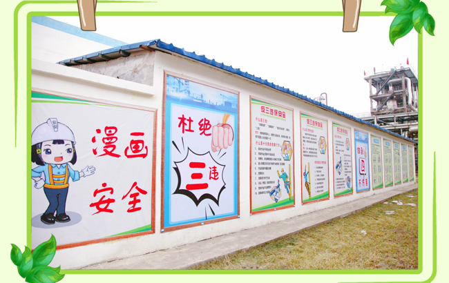 近日,金石园区分公司在生产厂区精心制作了一面约30米长的安全警示漫画墙,以职工喜闻乐见的方式打造安全教育课堂。这面安全警示漫画墙由11幅图片组成,紧密结合化工企业安全生产需要,内容围绕杜绝“三违”、做到“四不伤害”进行制作,潜移默化中教育引导广大职工从自身做起,落实安全责任,强化安全意识,筑牢安全发展根基。