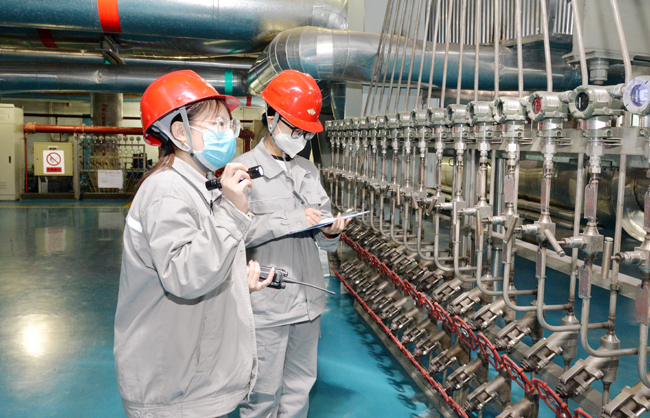 同华发电公司深入贯彻落实集团公司2024年安全工作会精神,绷紧安全弦,扛牢安全责任,坚持将“136”安全管理模式贯穿到安全生产全过程。在全国两会期间,更是提高站位,强化思想意识,紧盯重要、薄弱区域,加大隐患排查力度和频次,切实将安全生产责任落实到位,全面筑牢安全生产防线。图为该公司巡检人员正在汽机房2号机查看压力变送器数据。