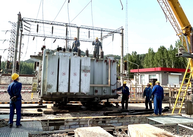 施工过程中,全体成员全力以赴抢工期、赶进度,在计划时间内完成拆卸、安装新旧主变压器本体及附件,低压侧铜母排,高、中压侧下引线及二次线;拆除、安装有载调压开关联结电缆,切割、焊接本体接地;利用钢导轨和液压千斤顶完成新旧主变本体更换,重新制作引线、铜排、主变二次线,并对主变本体进行清洗、喷漆及滤油静置;最后对新装主变本体及三侧开关进行保护校验、整组传动、信号对点等进行交接试验。在全体人员的团结协作下,运维和检修人员攻坚克难,历时21天,按照计划高质量、高效率完成变电站主变增容改造项目。