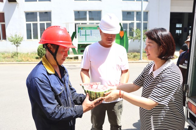 一线慰问促安全。“师傅,吃两块西瓜降降温。”“师傅,喝点水,下井一定要遵守规章制度、注意安全。”……这是宏圣金成矿建公司组织开展的夏日送清凉活动,真诚贴心的话语、温情周到的服务让职工在炎炎夏日里感受到一丝清凉。