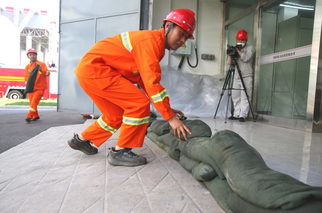 该公司对厂内外防汛重点部位、薄弱环节开展“扫雷式”隐患排查,着力抓好综合泵房、雨水泵房、电子间等地巡视检查,确保发现问题及时处理,保障设备安全稳定运行;全面强化应急准备和物资储备,认真检查清点防汛器材,对防汛沙袋、应急灯、雨衣等应急物资进行整理分类,确保防汛物资在紧急抢险时可随时调用;组织职工学习防汛应急预案,开展防汛实战演练,全面提升职工应对紧急状况的能力,织密防汛安全“防护网”。