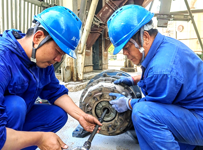 经现场检查确认,因异物卡顿,导致碎渣机瞬时过载,造成减速机油封破损漏油。“这得换减速机了,孟师傅,你马上安排专人监护,随时补油,我去跟领导汇报,条件允许的时候完成更换。”