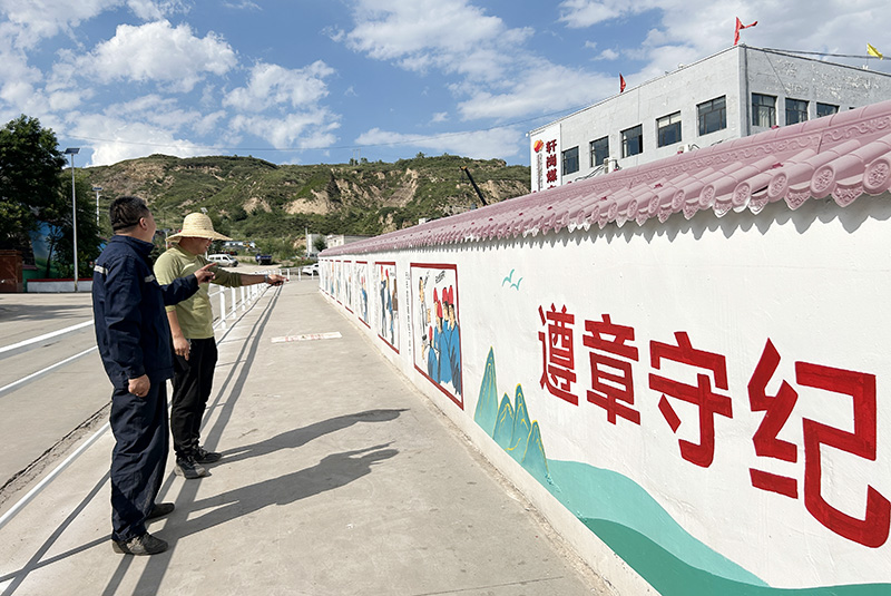 近日,轩岗煤电公司梨园河矿区主干道旁新建的安全文化长廊以其独特的彩绘内容成为矿区一道亮丽的风景线。