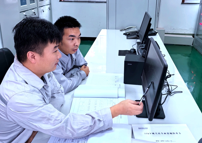 “特殊巡视是我们日常工作中一项非常重要的巡视工作,每逢节假日以及重要会议期间,我们都会对变电站开展特殊巡视工作,确保变电站在重要节点万无一失,稳定供电。”巡视过程中,巡检班长郑生平给班组年轻员工讲解特殊巡视的重要性。