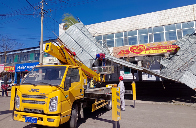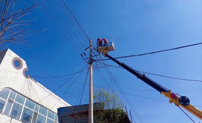 在康城文化站抢修现场,钢构屋顶被大风整体掀落,部分坠落在马路上,部分掉落在高压线路上,导致10千伏8804康城线停电。抢修队长带领8名队员抵达现场时,狂风仍在呼啸。“今天风大,大家一定注意安全,必须让居民用上电!”他一边叮嘱安全事项,一边带头爬上吊车,更换直瓶。从绝缘遮蔽、拆除绑线、更换直瓶、绑扎固定,一套操作行云流水,仅用半小时,他们就完成了低压直瓶更换工作。在另一处抢修现场,抢修人员在风中爬上十几米高的电线杆作业,狂风不断吹打他们的身体,电杆在风中轻微晃动,双手很快被冻僵,每一个操作动作都变得僵硬,但他们没有丝毫退缩,依旧凭借丰富的经验,专注地完成一道道工序,克服恶劣环境带来的困难,经过现场工作人员两小时的奋力抢修,全线恢复正常。在每一处抢修现场,大家都各司其职、忙而不乱,严格按照标准化作业采取安全措施,各项工作紧张有序。在大风呼啸中,一条条线路陆续恢复供电。