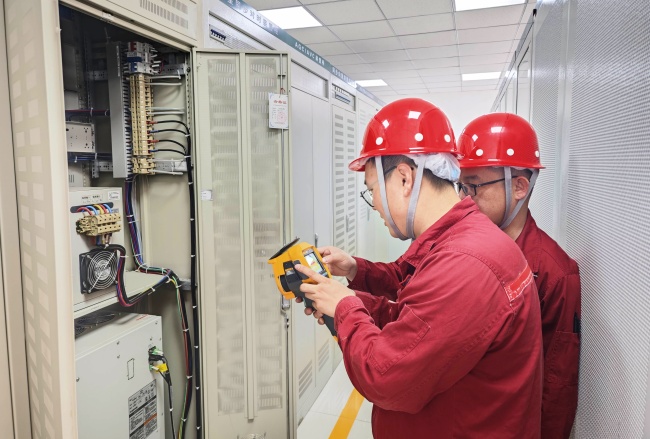 巡视人员在继电保护室通过监控系统实时核查设备告警信息,用红外测温仪测量接触器触点及保护柜内线路温度,确保设备运行温度正常;在主变区域,仔细记录油温数据,确认油位达标,并通过听音辨识设备有无异常声响;在110kV设备区内,运用红外成像检测仪检测隔离开关触头温度,检查室内外SF6断路器压力是否正常,全方位排查设备发热隐患,为风电场在高温下的运行筑牢安全防线。