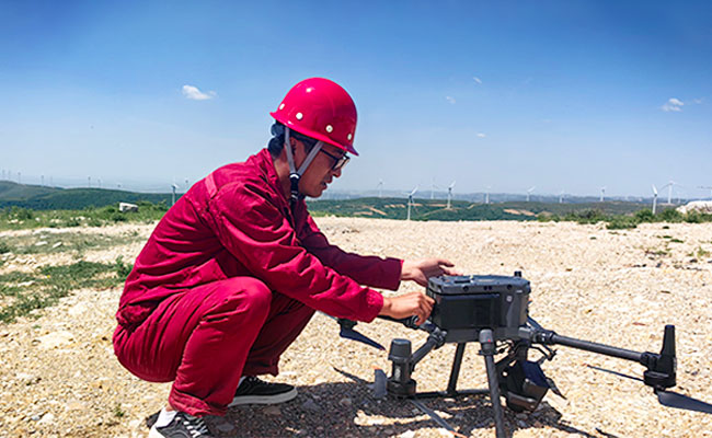 近日,风电公司无人机巡检小组在朔城牛家岭风电场顺利完成例行巡检任务。巡检小组利用无人机对风力发电机组进行专项检查,排查设备潜在的隐患。