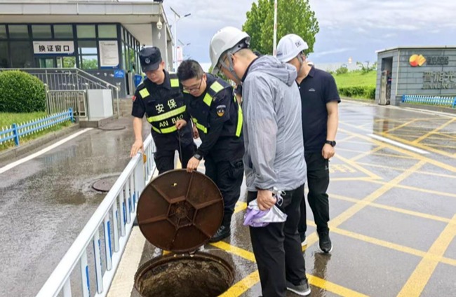 雨中巡查,消除风险点。该公司严格执行降雨期间不间断巡查和应急值班值守制度,确保值班人员全员在岗在位、24小时通讯畅通,及时关注雨情水情变化,保障防汛指令迅速上传下达。加强对废液收集池、地下管廊等低洼易涝点以及室外变配电房、楼顶屋面、危险化学品储罐区的实时监控与现场检查,在危险区域设置警戒线和警示标志,并第一时间组织人员解决排水口堵塞、泥沙淤积等问题,确保排水畅通,做到隐患动态清零。