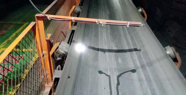 该矿西翼输送带选用B=1000mm、ST/S2500型钢丝绳芯阻燃抗静电防撕裂输送带,胶带采用硫化接头,总长为2200米,由于西翼皮带巷的特殊性,人行侧还设置有西翼架空乘人装置。之前在西翼皮带机尾、破碎机机尾,共安装有3道全断面防尘降水喷雾。西翼架空乘人装置作为重要的人员运输交通工具,之前采用的全断面防尘降水喷雾,长时间淋水,会急剧加速架空乘人装置的钢丝绳老化,缩短使用寿命。且喷雾形成的水雾时常会导致巷道大范围湿滑,且乘坐“猴车”人员路过时,水雾会打湿乘坐人员身体,降低视线范围,一方面增加了人员乘车时的不安全性,另一方面影响了巷道的安全标准化建设。