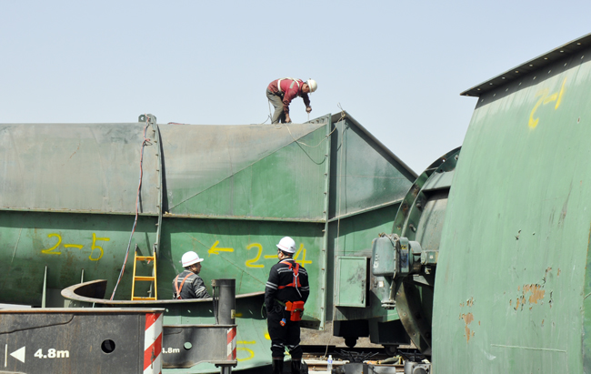 快推进。为了在最短的时间内完成临时主扇安装,该矿紧扣质量、安全、效率三大主线,对照标准抓质量,在设备进场的第一时间,组织专业技术人员对风叶进行探伤测试,对电机轴承、各种性能进行全方位测试,对配电设施进行全面检修。针对设备起吊、高空作业、设备组装等安全管控重点,制定了安装专项措施,安排专人现场跟班,从制度措施的落实和安装作业的管理上严格落实标准。特别是紧盯过程抓效率,每半月组织各施工单位召开重点工程推进会,理清每一阶段工程的施工计划,不定时召开现场办公会,及时解决施工过程中出现的难点,为安装工程高效推进提供保障。