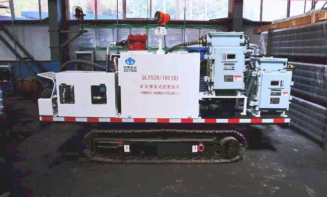 该设备采用履带驱动式整体布局设计和分体式结构,主孔施工长度在350米以上。钻机机身小,可以独立行走,现场适应性强,能够在井下各种复杂狭窄巷道行走及转向,运输灵活、安全高效、轨迹控制精度高。钻机配备了四组下稳固装置和两组上稳固装置,通过下支撑机构调整钻车水平,实现±180°的方位角回转和-40°—+70°俯仰角钻孔作业,能够满足不同钻孔平行度的要求。钻车配套随钻测量装置可通过防爆电脑实时显示钻井轨迹,利用孔底马达的拐角修正钻进轨迹方向钻至预定目标,从而提高钻探精度,具有给进行程长、推进平稳、一次成孔孔径大、抽采效率高、扭矩大、抗卡钻抱钻能力强等优点。此外,还具备全长水力造穴、掏煤功能。