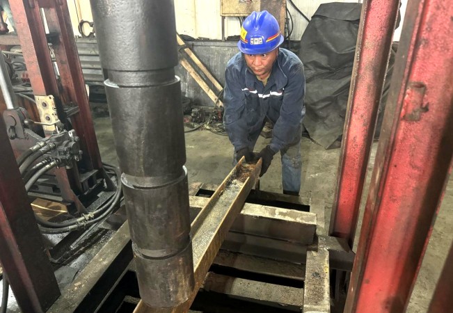 “我们将需要安装的配件平稳放置在操作台上,在压力机的缓慢压力作用下,配件安装到位;或者将需要整形的配件放置操作台上,利用压力机平稳施压将变形部位恢复到规定形态。”机修车间负责人闫明说。