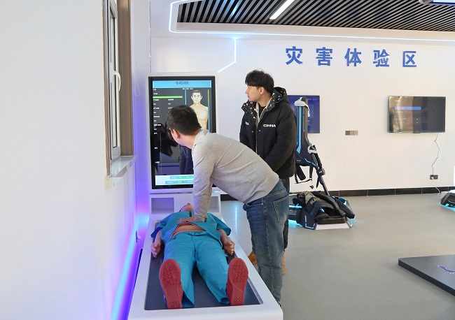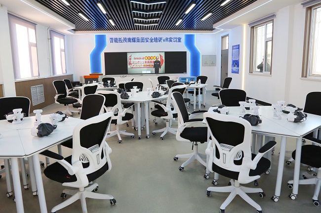 该公司培训中心VR实训室占地面积165平方米,分为VR实训区、灾害事故体验区及伤害体验区三部分,配备了VR穿戴设备、伤害体验装置、心肺复苏模拟设备等先进教学设施,综合运用声、像、光、电等现代化技术,创建真实度、还原度极高的特效场景。同时,通过案例警示、视频展示、急救演示等方式,可以让参训学员突破时空限制,进行煤矿十大特殊工种实训、体验矿井五大灾害、感受多种违章伤害,实现了低成本高频次的安全高效演练,促进教学与安全生产相融合,为安全培训营造全新的沉浸式、体验式、互动式学习环境。