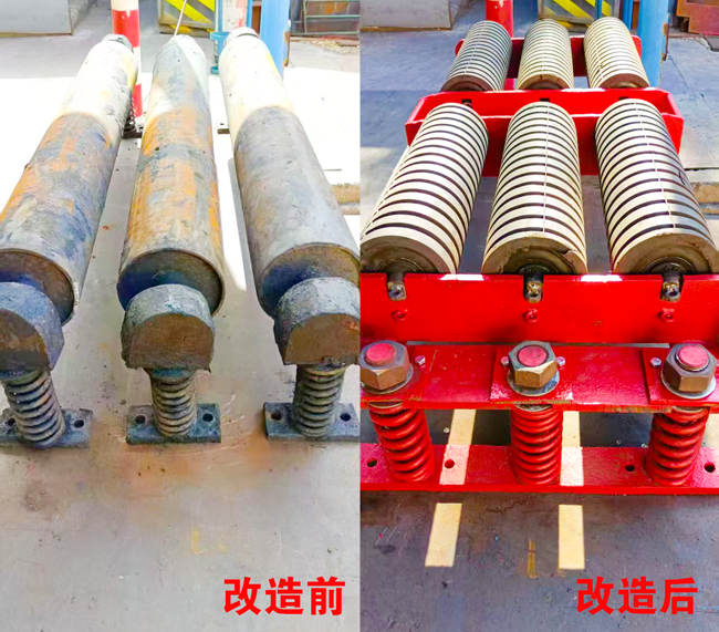 面对难题,该公司机运队成立攻关小组,利用废旧钢板边角料等为原料,采用整体焊接成型工艺,通过力学模拟优化结构布局,确保受力均匀分布,并且在缓冲装置顶部加装高弹性橡胶托辊组,利用其形变特性吸收冲击动能,降低对轴承的直接损伤。改造后的弹性缓冲装置使用周期延长,轴承更换频率下降,年维护成本减少,生产连续性大幅提升。