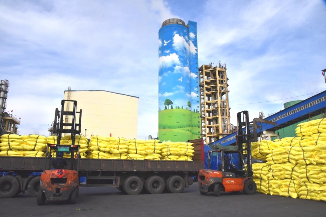 又是一年春耕时。在晋丰公司包装工段,一袋袋尿素经过缝线包装,整齐码放到库房货位上,等待车辆进行装运输送,奔赴全国各地春耕路。