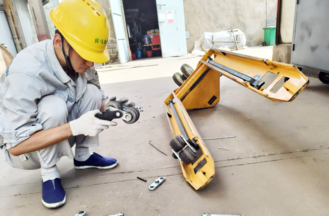 “陶师傅,#2锅炉拉石子煤的地牛(手动搬运车)坏了,请修复一下。”