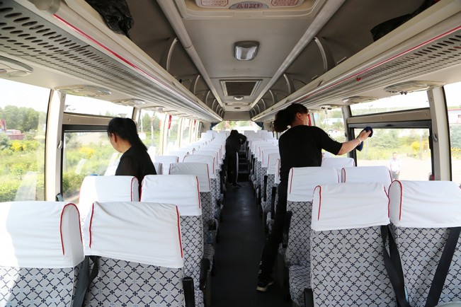 六月的增子坊煤矿矿区,人与自然和谐共舞,交织出一曲动人的生态赞歌,“美丽矿山 你我共建”的宣传标语分外醒目。在职工候车点,利用发车间隙,后勤中心的工作人员携带清扫工具,对通勤车内部进行细致打扫,“我们每班都会组织人员对车况和车貌进行检查,不仅要对车内外进行冲洗,也会对车里的垃圾桶及时清理干净,努力营造一个文明、整洁、舒适的乘车环境。”车队队长李彪说。