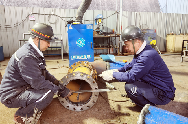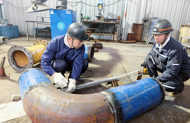 荣康煤业公司牢固树立“算账”意识,着力在技术创新、降本增效上做文章。面对井下所需的特定管路设备,综合考量加工费用、时长等成本因素后,决定自行加工,组织机电队专业电焊工自行设计焊接并安装325mm排水管、 8寸压风管路及4寸静压水管,此项工作较外委加工可提前10天完工,预计节约成本费用3万余元。图为该公司机电队电焊工正在加工采区轨道325mm排水管路龙门。