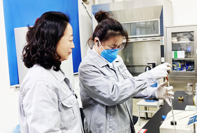 小张立刻戴上一副手套,然后一只手拽着另一只手五指尖往外摘取手套,手套被拉的长长的才脱下。雷班长说:“这种脱法很常见,但是手套被拽拉很容易损坏,今天咱们就学习一下如何摘取手套不损坏。”随即把几名化验员叫到一起,组织了一次摘取手套“小妙招”培训。