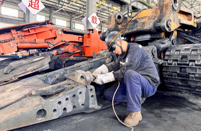 针对设备长期高强度作业导致核心部件损耗的问题,检修团队靶向发力,完成主轴轴承更换与减速器齿轮更新,确保传动系统运转平稳;面对铲板变形开裂、连接处断裂等“顽疾”,采用耐磨焊条补焊、整形焊接等工艺精细修复,全面恢复其结构强度与作业精度;同步更换老化衬套、密封件及液压管路,从源头消除渗漏隐患,为设备“强筋健骨”。