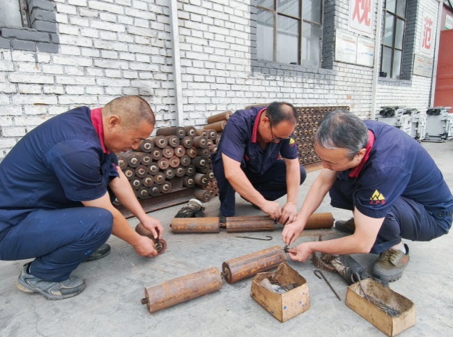 面对配件不足的困难,机修厂的老师傅们集思广益、翻箱倒柜,找出积存多年的车工切削刀,修复停用已久的压力机,通过“削、压、拆、装”一系列操作,逐步完成托辊滚筒的切削、压制与组装。他们还从报废托辊中拆下可复用的悬挂钩,安装至新组装的托辊中。尽管时间紧、任务重,汗水一次次浸透工装,但大家看到“重获新生”的三联托辊,都露出了欣慰的笑容。目前,这批三联托辊已全部安全投入井下使用,且运行稳定。