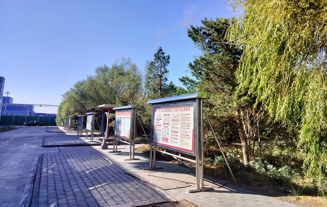 在绿色矿山建设中,该矿坚持规划先行,从源头夯实环保基础。通过对厂区空间进行科学研判与合理规划,明确划分生产作业区、综合办公区的范围,并在各功能区醒目位置设置标准化标识牌板,有效规范了生产办公秩序,构建起“分区管控、分类施治”的环保管理框架。在此基础上,该矿大力实施厂区绿化改造与环境综合治理工程,通过补植绿化植被、整治闲置区域、优化景观布局,同步落实固废规范处置、危险废物安全管理和污水达标处理,让“绿色”成为厂区最鲜明的底色。
