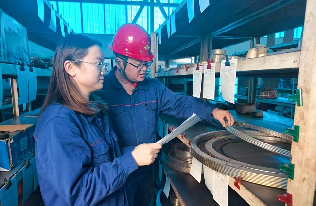 精细把控,拧紧降本“节流阀”。该公司以“精细化、零浪费”为目标,从物料申领、暂存库管理到废旧物资处置等方面实施全链条管控,坚决堵塞成本漏洞。检修前组织专人全面盘点备品备件、阀门管件等物资,建立电子台账,严格执行物料领用审批制度,实现按需申领、精准发放,从源头杜绝浪费。检修过程中设立修旧利废区,对更换的钢材、阀门、安全附件等物资分类回收、统一存放,并安排专人负责修复再利用。此外,重点核查暂存库物资“账卡物”一致性、拆除备件状态与再利用潜力、大修物资实际使用情况,通过优化基础管理、完善物资信息、严格出入库追溯及建立月度检查通报机制,有效减少库存积压,提升物资周转与利用效率。