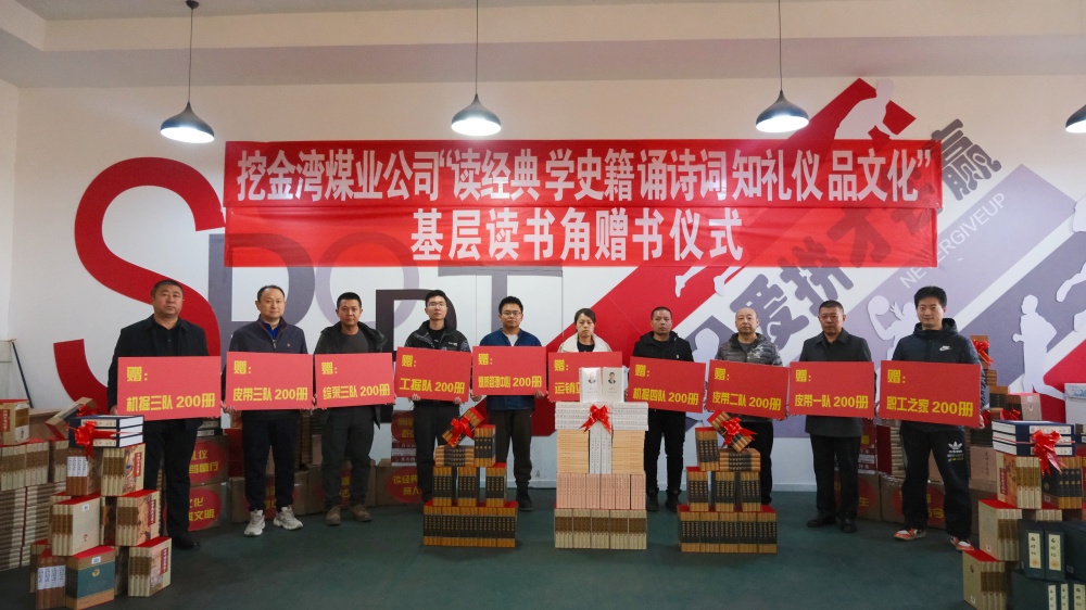 挖金湾煤业公司积极贯彻落实“读经典、学史籍、诵诗词、知礼仪、品文化”的相关安排,全面开展文化下基层活动,近日,公司举行了“读经典、学史籍、诵诗词、知礼仪、 品文化”基层读书角赠书仪式。