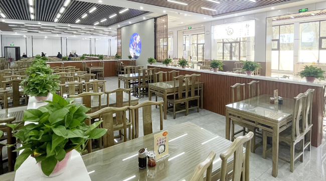 “哇!咱们食堂这是走上了‘高大上’的路线啊!”到食堂用餐的职工欣喜地感慨。改造后,陈旧的餐厅焕然一新,宽敞舒适的就餐大厅窗明几净,现代装修风格简洁典雅,配上盆栽绿植温馨如家,整洁的餐台上各类花式菜肴香气扑鼻。