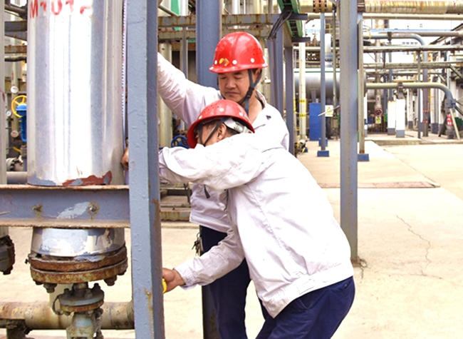 近日,金象公司合成车间氢回收装置现场,管理人员组织职工围绕隐患整改进度、整改成效进行培训。