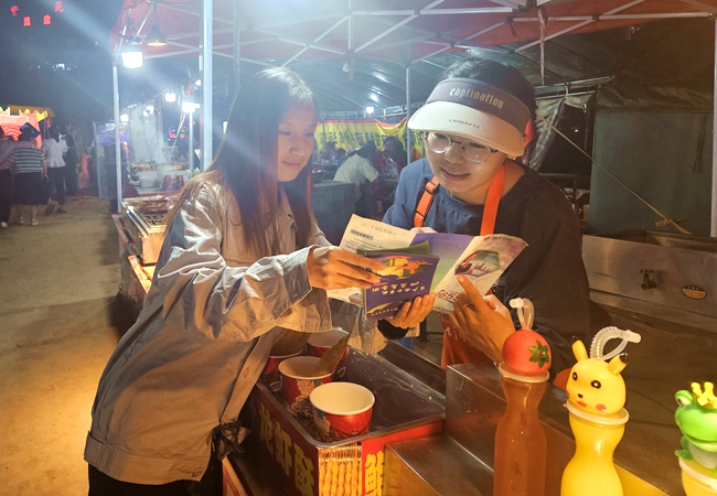 “今天晚上这么多人,注意电线不要放在脚边,大家来来往往的,不安全也不方便。”入夏夜晚,石楼县转盘处灯火通明,人群穿梭在夜市摊位间,地电石楼分公司员工挤在人群中,为摊主们检查用电设备,及时排除安全隐患,确保食客乐享美食、摊主安全用电。
