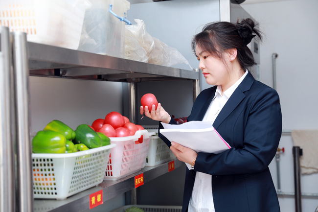 “储藏室用来存放干货、调料、粮油等物品,保持干燥通风,定期盘库检查,防止食材霉变过期。”后勤工作人员严把食材关,制定详细的菜品采购、验收管理制度,做到勤采购、少采购;实行标准化管理,不定期对食堂食品安全工作进行督导检查,安排专人消毒餐具、清理桌面、冲洗地面,做到卫生工作制度化、持续化。