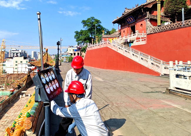 地电柳林分公司党员服务队来到香严寺,检查用电线路存在的安全隐患,并宣传安全用电知识,以充足电力助推古建旅游持续“升温”。