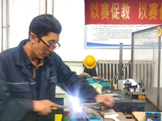 比赛现场,该公司参赛职工展现出高度的敬业精神和坚韧不拔的优秀品质。数控组的参赛职工全神贯注,精确进行测量、编程、装夹、给刀,随着操作屏上由字母、符号、数字组成的指令不断跳动,零件产品经过一番“雕刻”,“蜕变”成精密的部件。钳工组的参赛职工认真操作,手法娴熟,测量零件数据、精确读取、均匀打磨,展现了基本操作技能。现场锉刀声、敲打声、机器轰鸣声此起彼伏,气氛紧张而热烈。“虽然这次参赛过程出现设备故障的突发状况,但我还是尽力完成了比赛任务,做出了属于自己的优秀作品,这次比赛不仅让我展示了技艺,更让我深刻体会到了‘匠心’二字的含义。我会继续努力,不断提升自己的技能水平。”数控组参赛职工王新旺在比赛后说道。