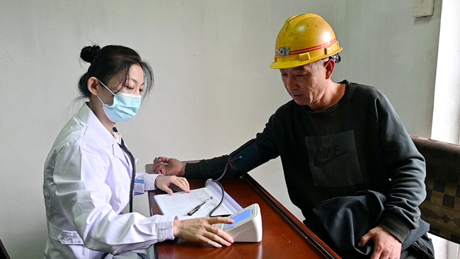 作为保障员工身体健康和生命安全的重要阵地,井口急救站配备了急救箱、救护担架、自动苏生器、正压式氧气呼吸器、备用氧气瓶、氧气筒、止血带、电子血压计等医疗器械,常备速效救心丸、防暑降温药品等急救药品,由两名驻矿医师全天候提供专业快捷的医疗服务,使员工遇到突发状况时能够第一时间得到初步救护处理。员工足不出矿便可享受免费的健康咨询服务,进一步提高健康生活品质。